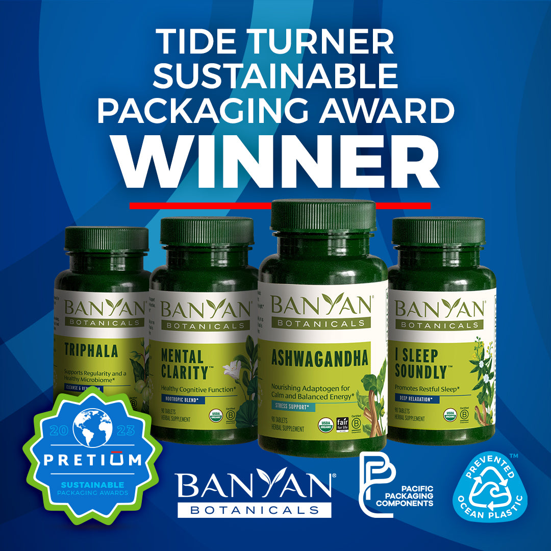 Prevented Ocean Plastic™: We are well on our way to transitioning the majority of our herbal tablets, with the exception of our guggulu formulas and Shilajit, which will be in glass, to bottles that are made with 100% Prevented Ocean Plastic™️.