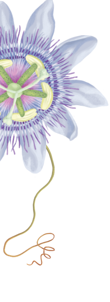 This climbing vine has delicate winding tendrils and intricate purple flowers. It is prized in herbalism for its calming and relaxing effect.*
