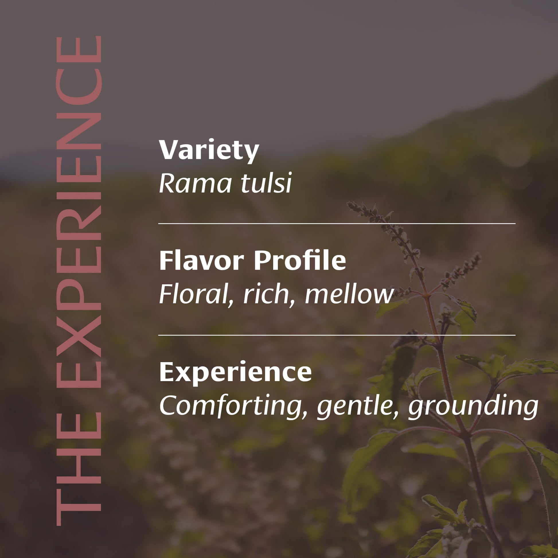 To make the most of your ceremony, take the time to become fully present. Bring awareness to your senses, and tune into your breathing. Notice what arises in you as you sit with your tea. You may wish to journal, sit in silence, or share with a friend. With practice, your relationship with Earthy Ritual Tulsi will deepen and become a sacred allyship.