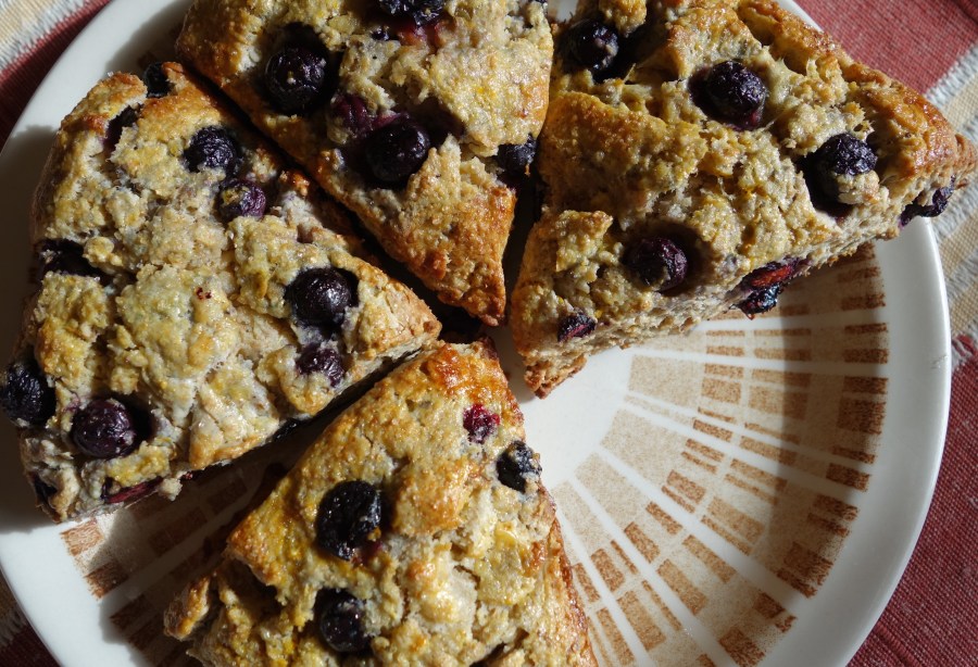 This morning my heart says yes to comfort food – hence, blueberry scones, (recipe courtesy of Smitten Kitchen). And shared with my house mates… which is also comforting.